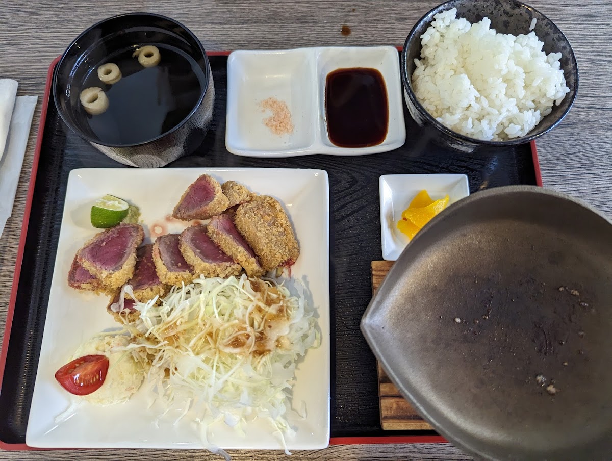 The menu here is a showcase of culinary creativity, especially if you enjoy cooking your food to your preference. One standout is the 牛カツ定食 (Beef Cutlet Set Meal), which is served rare and arrives with a mini iron plate that allows you to sear your meat just the way you like it. Customers rave about how the flavor exceeds expectations, and many prefer to dip the cutlet in soy sauce for that extra umami kick. As 豆ちーず shared, "The flavor was beyond my expectations; I love it with soy sauce!"